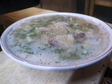 2009年11月02日 中州・天神の夜は更けて なんとな〜く 本日2杯目のラーメン 昭和通りにある屋台「ともちゃん」 ネットでも高評価のラーメン550円 豚だけを長時間煮込んで取る濃厚とんこつスープが旨かった。 ただ、濃厚すぎて少しとろみのあるスープは評価が分かれるかも?