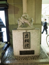 元々は博多誓文払いを創始した八尋利兵衛が公園設備のために広告を募り、神社に寄進したもので、石積みの一面一面に明治期の店舗広告が記載されており、なかなか面白いです。