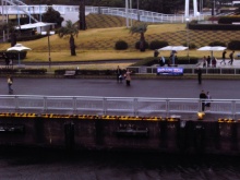 さていよいよ出航です。仕事の関係でお付き合いのあるIさんと合流するため、7デッキのオープンデッキに出てみると出航のセレモニーが始まっていました。私はシャンパンを娘はオレンジジュースを手に取り、生バンドの演奏を楽しんでいるとIさんが登場