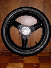 2009年03月10日 17インチホイール ばいくぅ(バイク) 先週、一週間の東京出張中 あまりにも暇だったのでホテルでネット徘徊 その時に、たまたま目にしたものをツイツイ 暇&酔いにまかせて購入してしまった それが今日届いてた J17xMT3.00 17インチ リム幅3.00 密かにうわさのCB−1用フロントホイール 目立った傷も無く、曲がりも無いようだし、再塗装したと商品説明に書いてあったので塗装ムラを覚悟していたが塗りなおしたと思えない出来で大満足(^0^*) 非常にお買い得な物をゲットできた さてさて、これをどう活かすか・・・